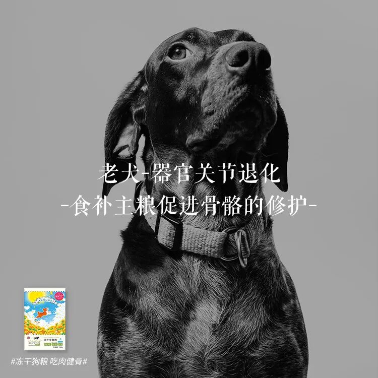 老年的狗狗身体器官开始退化,。容易出现肥胖/心血管疾病/关节萎缩。鸡肉中丰富的磷脂成分是促进脂肪代谢的重要成分,对于预防高龄狗狗的心血管疾病十分有效。另外,新品冻干中加入了≥30mg/kg的胶原蛋白,提高狗狗的肌肉和关节的强度力量。